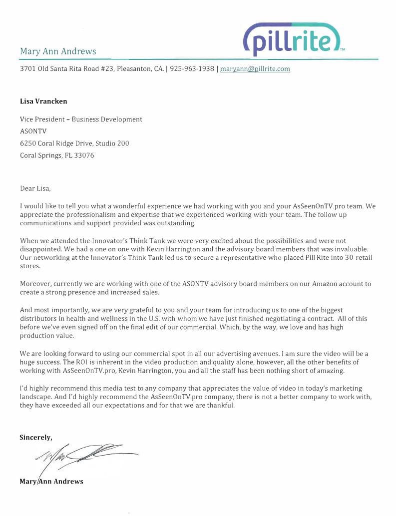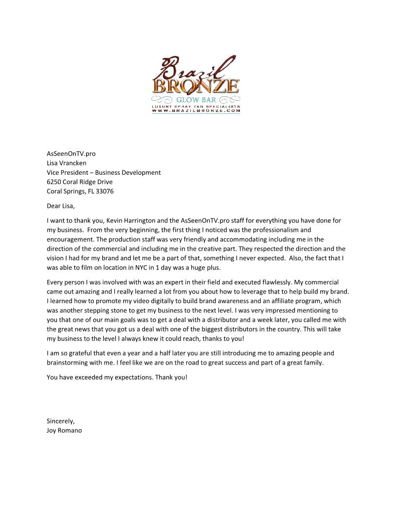 Once both parties authorize this agreement, Participant commits to participate in the AsSeenOnTV.pro TV campaign described above and does further agree to provide the completed product/service information form in a timely manner. All aspects of the agreement will be completed within twelve months or sooner of agreement execution assuming Participant does not withhold reasonable approvals. The parties agree that Florida law applies and the jurisdiction for any action regarding this agreement shall lie in the courts of Broward County, Florida. AsSeenOnTV.pro has no direct affiliation with the networks on which they air and purchases airtime through cable providers, networks and/or other media sellers. This agreement contains the full and complete understandings between the parties whether written or oral, pertaining thereto, and cannot be modified except by a written instrument signed by each party hereto.