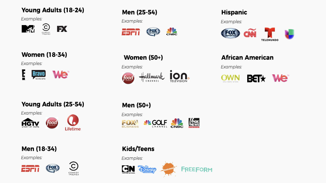 Once we agree to work together, we require all participants to complete both the market and network checklists below to best target your demographic. We will disperse your spot amongst many of the chosen networks and markets you indicate.